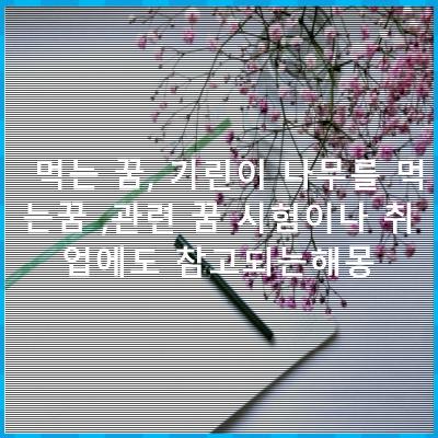 이번 꿈해몽 내용은 먹는 꿈, 기린이 나무를 먹는꿈 ,관련 꿈 시험이나 취업에도 참고되는해몽 비슷한 내용꿈 정리 참고 해보세요.